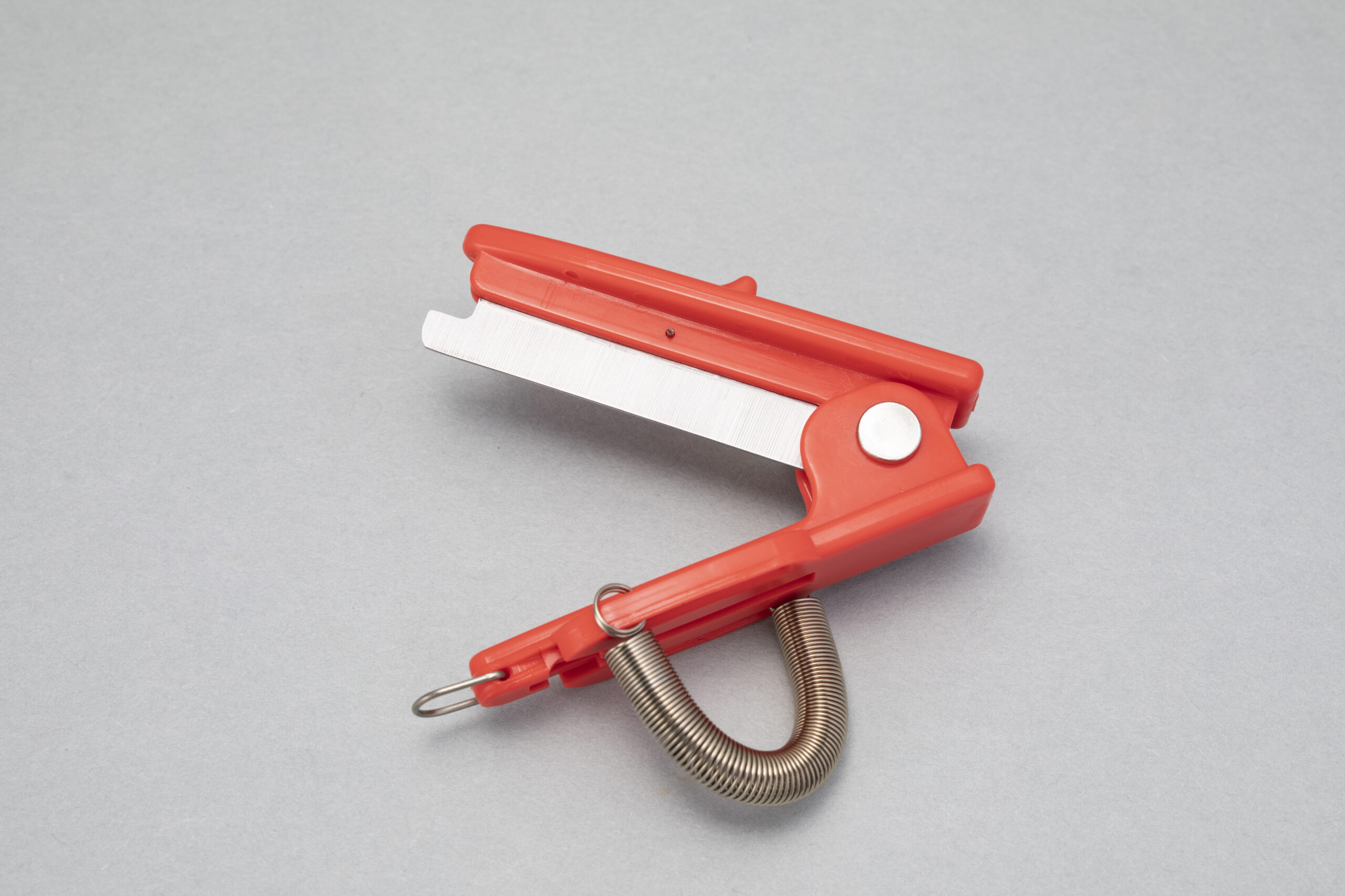 The cutter loaded on a finger. Vegetables can be harvested by one hand. Product number Product name Package 283 Finger attachment cutter for harvest (stainless) 1 BP, 12 parent boxes